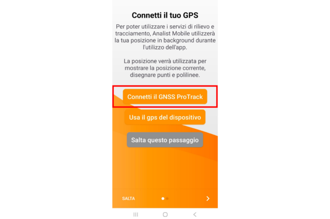 - Dalla dashboard principale, seleziona “Connetti il GNSS ProTrack“.