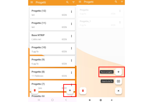 - Crea Progetto: Clicca sull’icona “+” > Nuovo Progetto. Definisci il sistema di riferimento (es. UTM/WGS84).